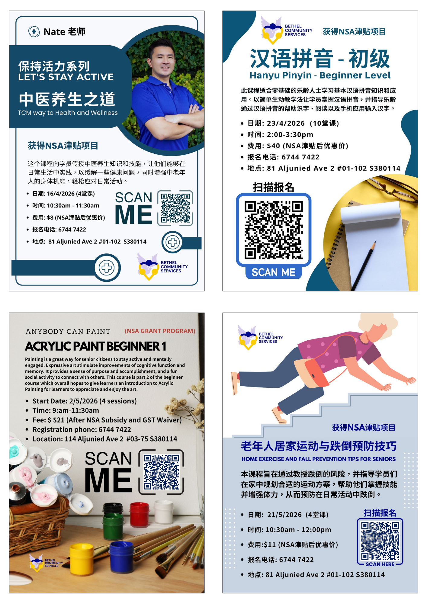 1)开课日期/时间:16/4/2026/星期四/ 10:30am - 11:30am (4堂课)